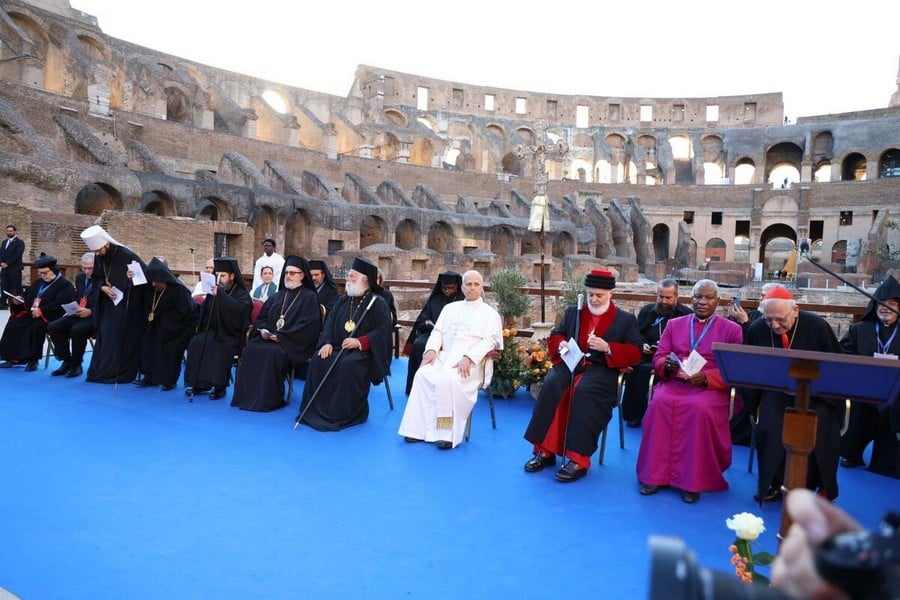 Հոկտեմբերի 28-ի ժամը 16։30-ին, տարբեր կրոնների ներկայացուցիչները միաժամանակ աղոթք բարձացրեցին հանուն խաղաղության։ Քրիստոնյաների միջեկեղեցական աղոթքը կատարվեց Պապ Լեոն XIV-ի նախագահությամբ Հռոմի գլխավոր խորհրդանիշներից մեկի՝ Կոլիզեումի մեջ։ Այլ կրոնների ներկայացուցիչները աղոթեցին Կոլիզեումին հարակից տարբեր վայրերում։ Մոտ կես ժամ անց բոլորը համախմբվեցին Կոլիզեումը հարևանությամբ բարձացող Կոստանդինոսի կամարի առջև պատրաստված հարթակում՝ մասնակցելու եզրափակիչ արարողությանը։ Նրա ավարտին հրչակվեց Խաղաղության կոչը, ապա տարբեր կրոնների ներկայացուցիչները վառեցին Խաղաղության մոմակալը որպես համերաշխության և հույսի նշան։ Այնուհետև կոչի օրինակները բաժանվեցին ներկաներին՝ որպես խաղաղության ուղերձի տարածման խորհրդանշական քայլ։