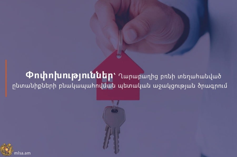 Իրականացվում են փոփոխություններ՝ Ղարաբաղից բռնի տեղահանված ընտանիքների բնակարանային ապահովման պետական աջակցության ծրագրում․ Կառավարությունն այսօրվա նիստում հաստատել է Աշխատանքի և սոցիալական հարցերի նախարարության կողմից մշակված նախագիծը։