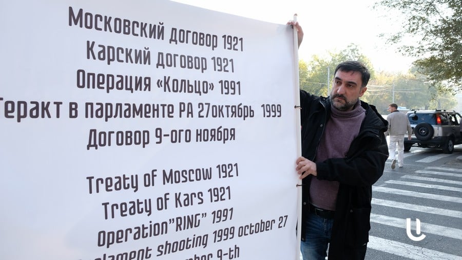 -Իմ ուղերձն ուղղված է իմ հասարակությանը, որ մեր հասարակությունը գիտակցի, որ այն ծրագրերը, որոնք իրականացվում են «ԿԳԲ-ի պադվալներում», իրենք շարունակելու են իրականացնել: Դրանք այն ծրագրերն են, որոնցով մասնատում ու դժբախտացնում են ժողովուրդներին: Մեր հասարակությունը պետք է գիտակցի, որ ռուսը կփրկի տերմինը սին է, էսպես է փրկելու ռուսը: Իսկ մեր հասարակությունն ուզո՞ւմ է՝ այսպես փրկի: Պետք է ՀՀ քաղաքացին որոշում կայացնի՝ ուզո՞ւմ է ռուսը փրկի, թե չէ,- այսօր Երեւանում ՌԴ դեսպանատան դիմաց նոյեմբերի 9-ի եռակողմ պայմանագրի 5-րդ տարելիցի առիթով կազմակերպված բողոքի ցույցի ժամանակ Aravot.am-ին ասաց ակցիայի նախաձեռնողներից Էդգար Ամրոյանը: