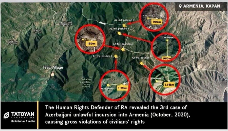 Արման Թաթոյանի փաստահավաք աշխատանքների արդյունքում պարզվել էր, որ դեռեւս պատերազմի ժամանակ՝ 2020թ. հոկտեմբերի վերջերին ադրբեջանական զինված ուժերը ներխուժել են ՀՀ ինքնիշխան տարածք՝ Սյունիքի մարզի Կապան համայնքի Ծավ գյուղին հարող սահմանային հատվածում՝ իրական վտանգ ստեղծելով հատկապես Կապանի Ներքին Հանդ եւ Ծավ գյուղերի բնակիչների համար:
