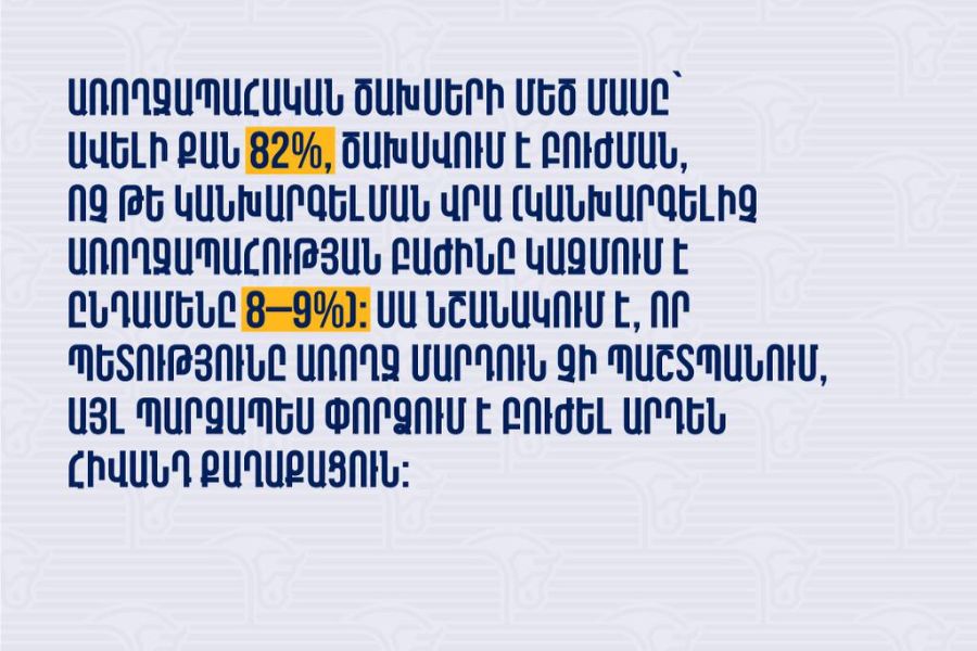 Յուրաքանչյուր հինգերորդ քաղաքացի իր բուժման ծախսերը հոգում է սեփական միջոցներով՝ առանց ապահովագրական կամ պետական փոխհատուցման։