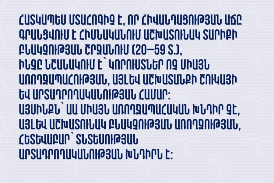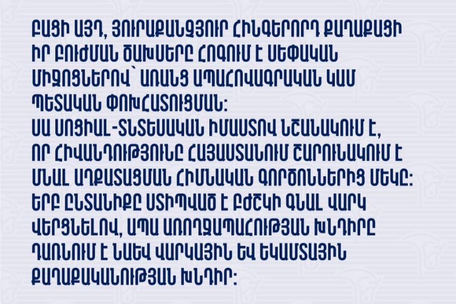 Սա սոցիալ-տնտեսական իմաստով նշանակում է, որ հիվանդությունը Հայաստանում շարունակում է մնալ աղքատացման հիմնական գործոններից մեկը։