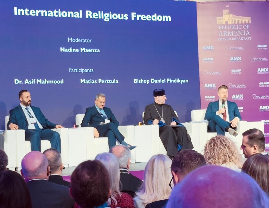 Կրոնական ազատության հարցերով ԱՄՆ հանձնաժողովի փոխնախագահ Ասիֆ Մահմուդը (լուսանկարում՝ ձախից երկրորդը), ելույթ ունենալով աղոթքի նախաճաշի ժամանակ նշել է. «Խորապես մտահոգված եմ Հայաստանում հոգևորականների ձերբակալության մասին հաղորդագրություններից: