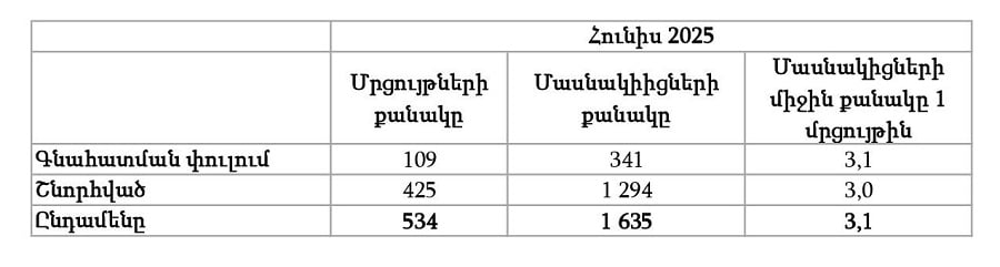 2025 թ. հունիս, հուլիս և օգոստոս ամիսների ընթացքում պետական գնումներին` միջին հարաբերակցությամբ, մասնակցել են առավելագույնը 2–3 կազմակերպություն: