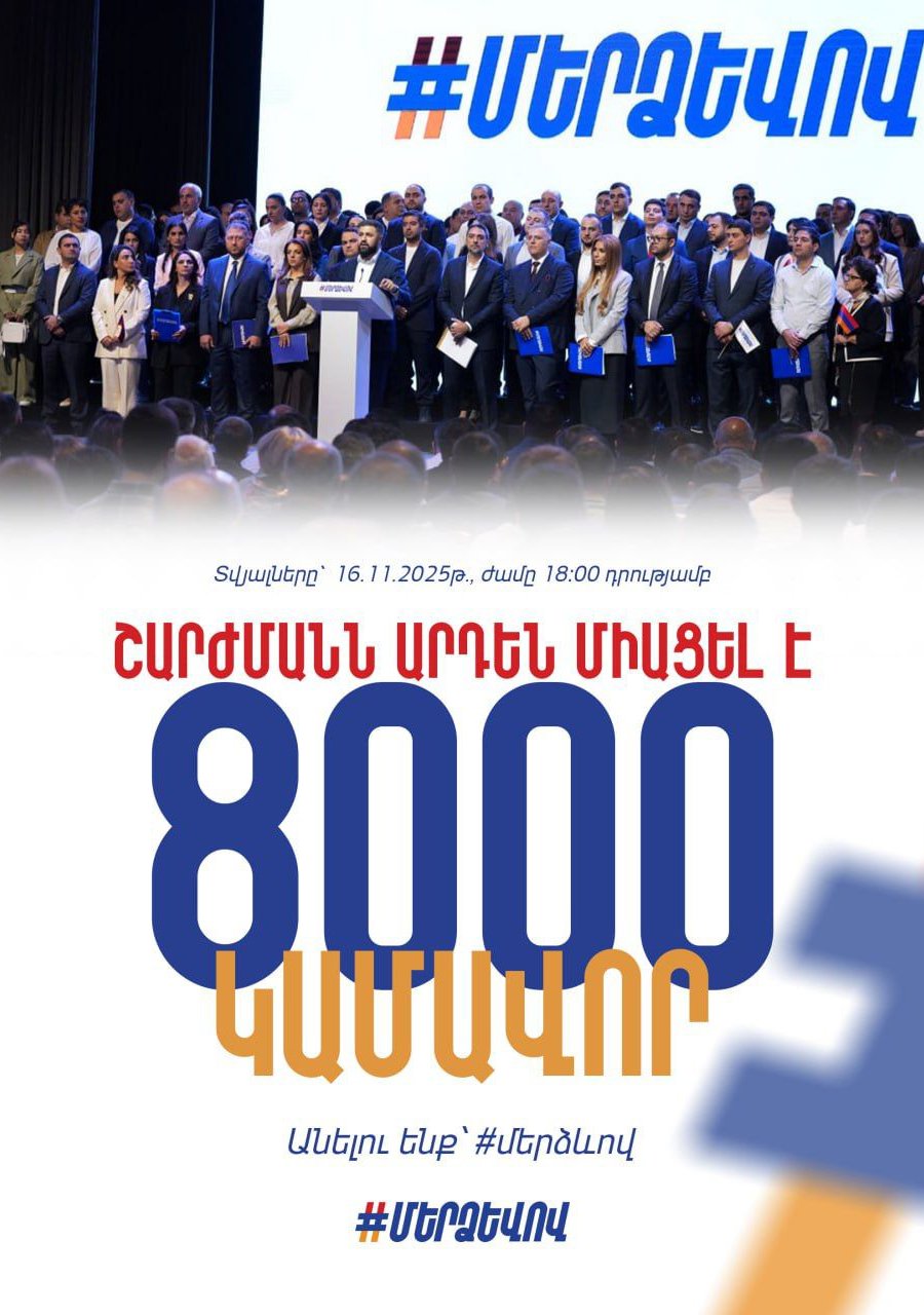 «Մեր ձևով» ժողովրդական շարժումը շարունակում է թափ հավաքել։ Ապօրինի կալանքի տակ գտնվող ազգային բարերար Սամվել Կարապետյանի առաջնորդած շարժմանն արդեն 8 հազար կամավոր է միացել։ Վերջին օրերին մեզ միացողների թիվն ավելացել է մի քանի անգամ։ Միայն հինգ օրում շարժմանը շուրջ հազար քաղաքացի է միացել և այս միտումը շարունակվում է։