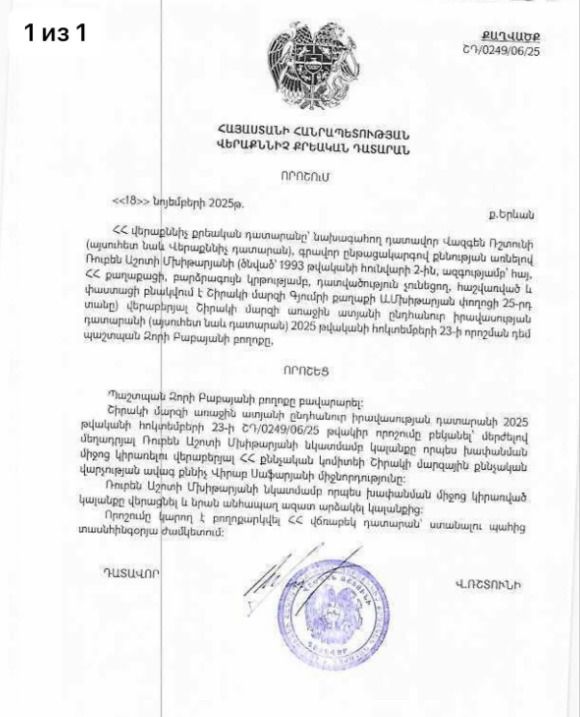 Վերադաս դատարանը բավարարել է մեր որոշումն ամբողջությամբ, ինչից էլ ենթադրելի է որ հաստատված չի համարել հիմնավոր կասկածի առկայությունը։