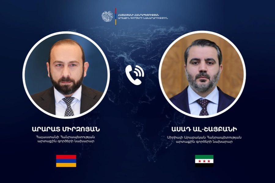 ՀՀ ԱԳ նախարար Արարատ Միրզոյանը հեռախոսազրույց է ունեցել Սիրիայի Արաբական Հանրապետության ԱԳ նախարար Ասադ Ալ-Շայբանիի հետ։