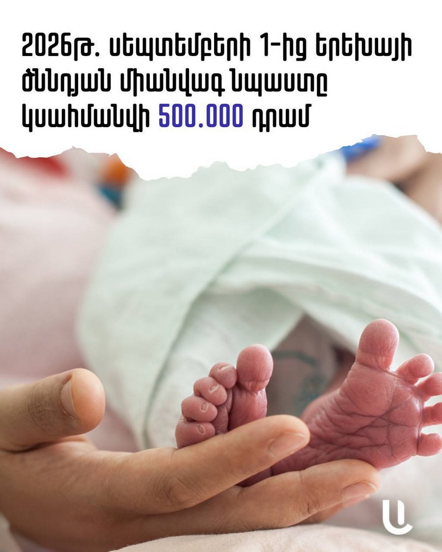 Հաջորդ փոփոխությունը, որը կառավարությունն առաջարկում է, վերաբերում է երեխայի ծննդյան միանվագ նպաստին, որն այսօր կարգավորվում է ըստ երեխայի կարգաթվի։ Այսինքն՝ առաջին եւ երկրորդ երեխայի ծննդյան դեպքում տրվում է 300 հազար դրամ միանվագ աջակցություն, երրորդ-չորրորդի դեպքում՝ 1 մլն դրամ եւ 1,5 մլն դրամ՝ հինգերորդ ու հաջորդ երեխայի դեպքում։