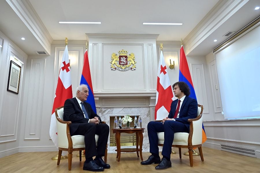 Վրաստան կատարած պաշտոնական այցի շրջանակում Հանրապետության նախագահ Վահագն Խաչատուրյանն առանձնազրույց է ունեցել Վրաստանի վարչապետ Իրակլի Կոբախիձեի հետ։