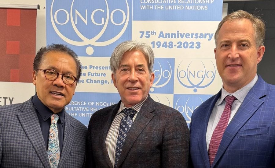 CoNGO Immediate Past President Rev. Dr. Liberato C. Bautista, President of CoNGO Dr. Peter Preziosi, and Assembly Executive Director Bryan Ardouny