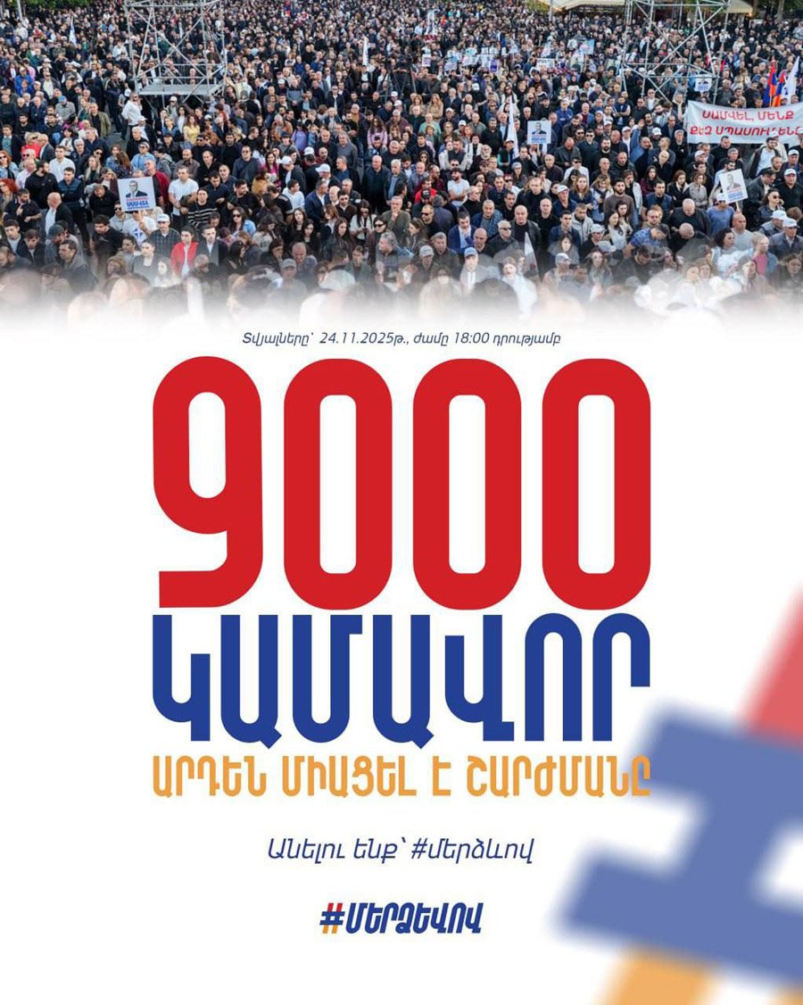 «Մեր ձևով» ժողովրդական շարժման կամավորների թիվը հասել է 9 հազարի։ Ապօրինի կալանքի տակ գտնվող ազգային բարերար Սամվել Կարապետյանի առաջնորդած շարժմանը մեկ շաբաթվա ընթացքում հազար կամավոր է միացել։