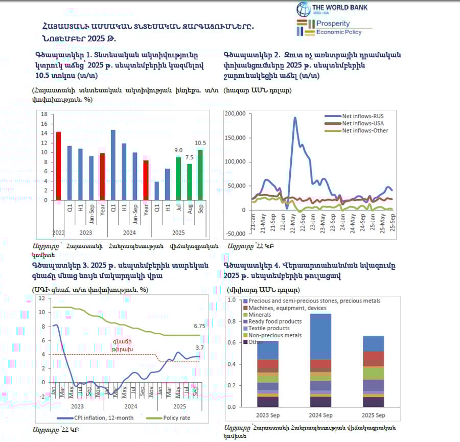 Համաշխարհային բանկը հրապարակել է Հայաստանի տնտեսական զարգացման ամսական ամփոփագիրը։