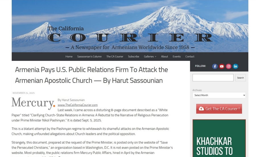 Սակայն, Ադրբեջանի և Թուրքիայի դեմ պայքարելու կամ Վաշինգտոնում Հայաստանի շահերը պաշտպանելու փոխարեն, Փաշինյանը նախընտրել է հանրային կապերի ընկերության թանկարժեք ծառայությունները օգտագործել Հայ Առաքելական Եկեղեցու և նրա առաջնորդության վրա հարձակվելու համար։