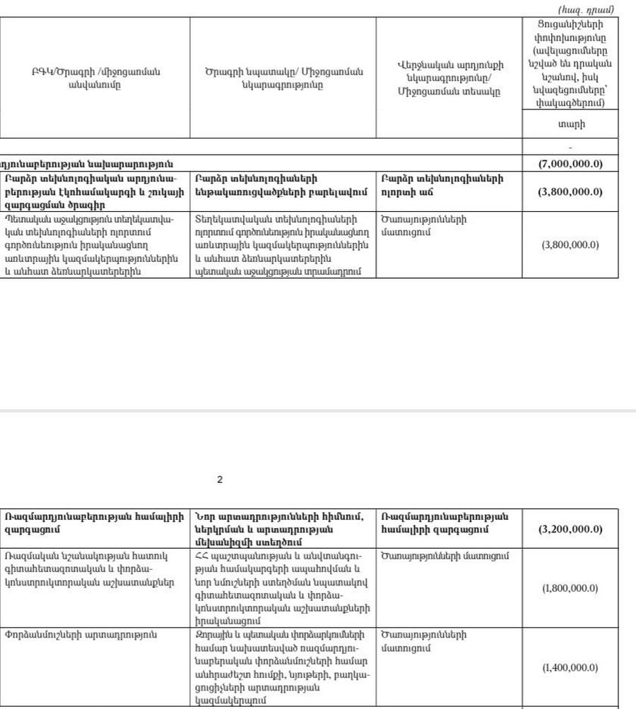 Նույն «որոշումով» 3.8 մլրդ դրամ էլ կրճատվել է ՏՏ ոլորտին տրամադրվող պետական աջակցության ծրագրից: Նկարը կցել եմ: