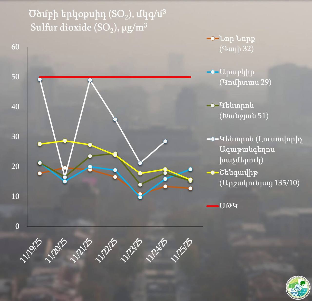 ✅ Ծծմբի երկօքսիդի պարունակությունը չի գերազանցել սահմանային թույլատրելի կոնցենտրացիան: