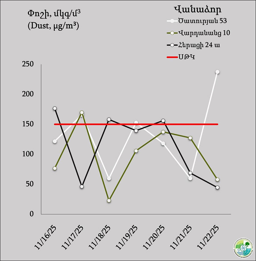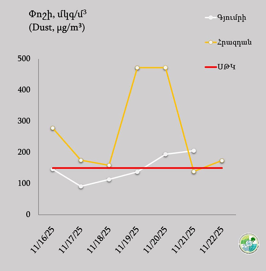Քաղաքների մթնոլորտային օդում փոշու պարունակությունը 16-22-ը (2025թ․)