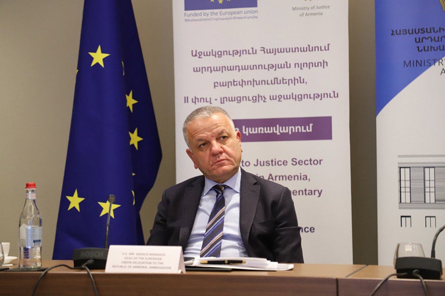 Միջոցառմանը ելույթով է հանդես եկել նաև ՀՀ-ում ԵՄ պատվիրակության ղեկավար, դեսպան Վասիլիս Մարագոսը: