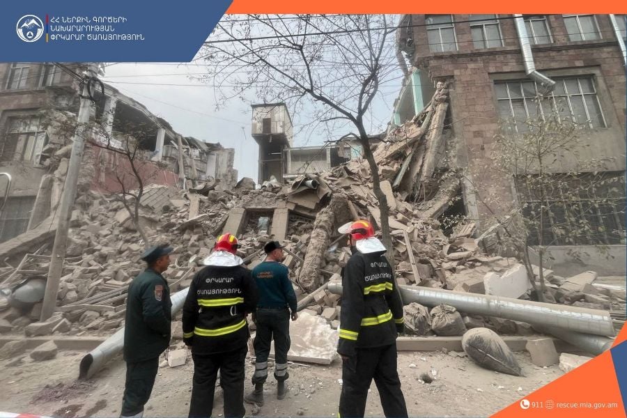 Ըստ նախնական տվյալների մասամբ փլուզվել է եռահարկ շինությունը (տնտեսական ապրանքների և սննդի պահեստի հատվածը)․ կա տուժած։