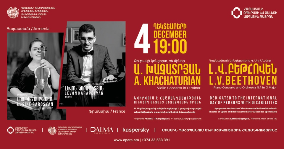 Դեկտեմբերի 3–ը Հաշմանդամների միջազգային օրն է: Ա.Սպենդիարյանի անվան օպերայի և բալետի ազգային ակադեմիական թատրոնում դեկտեմբերի 4-ին կայանալիք համերգը նվիրված է այդ օրվան: