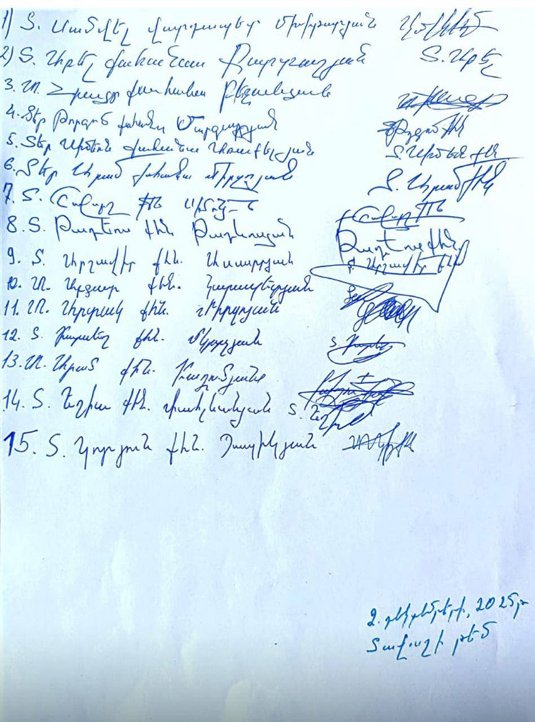 Ելնելով ստեղծված և ոչ ընդունելի իրավիճակից՝ վերստին հաստատում ենք՝ շարունակել մեր հոգևոր ծառայությունը նվիրումով, արդարության և ճշմարտության բարձր գիտակցությամբ, հավատարիմ Սուրբ Գրքի ճշմարտությանը և Եկեղեցու Սրբազան ավանդությանը՝ ի սեր մեր հավատացյալ ժողովրդի։