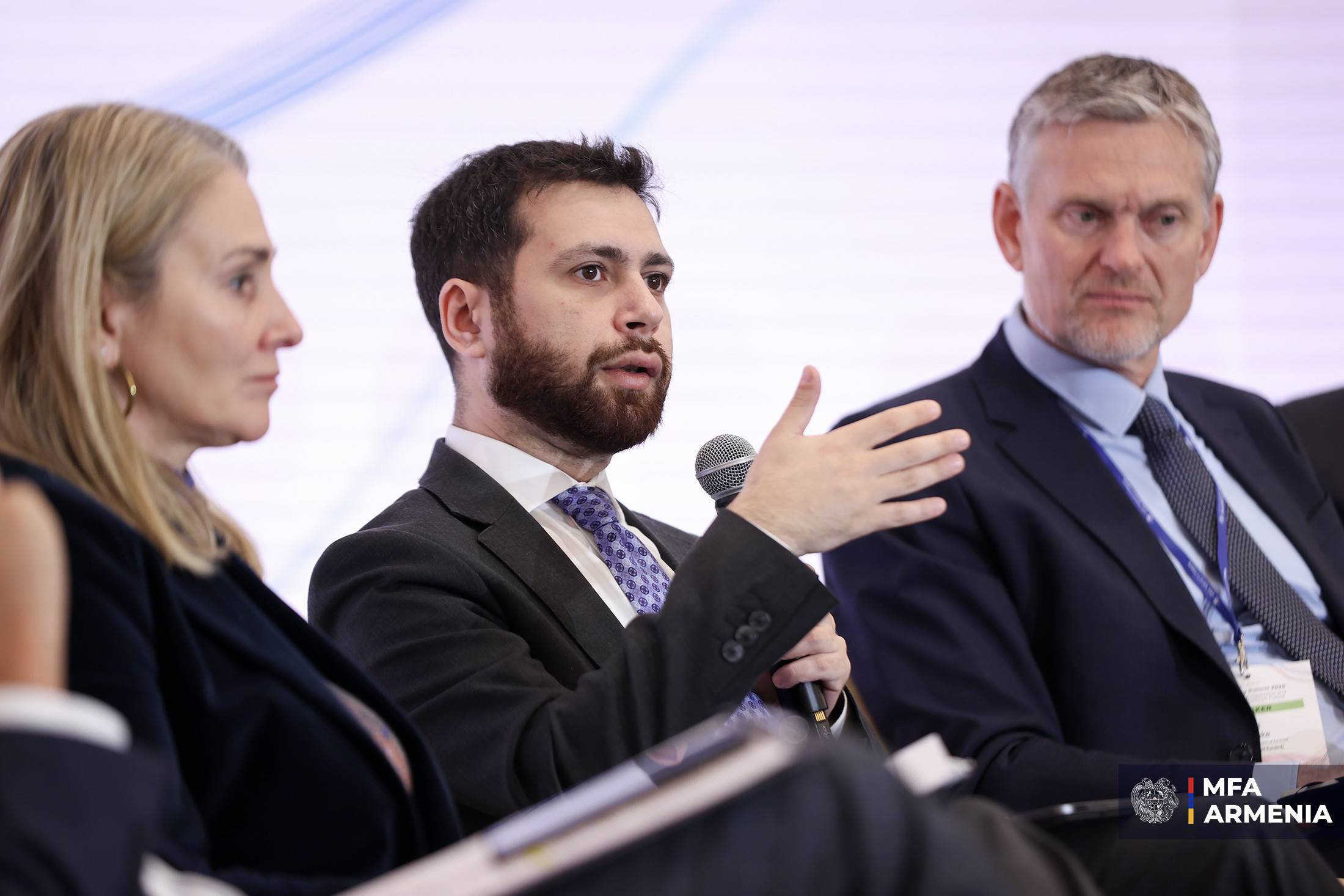 Իր խոսքում ՀՀ ԱԳ նախարարի տեղակալն անդրադարձ է կատարել Հայաստան-ԵՄ հարաբերությունների զարգացմանը՝ ներկայացնելով «Հայաստան-ԵՄ գործընկերության ռազմավարական օրակարգ» փաստաթուղթը: Վահան Կոստանյանը նշել է, որ նոր փաստաթուղթը սահմանում է ՀՀ-ԵՄ գործընկերության նոր և հավակնոտ նպատակներ, այդ թվում՝ անվտանգության, կիբերանվտանգության և տնտեսական ոլորտներում: