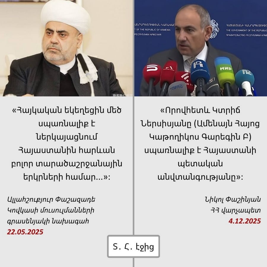 «Այստեղ գտնվողների ուղերձը միակն է՝ դատապարտել Նիկոլ Փաշինյանի բռնաճնշումները Հայ Առաքելական եկեղեցու դեմ: Այս բռնաճնշումները ոչ միայն հակաեկեղեցական են, այլ նաեւ հակաքրիստոնեական են: Ինձ մոտ արդեն կասկած չի հարուցում այն, որ Նիկոլ Փաշինյանի այս գործողությունները պայմանավորված են Փաշազադեի հրահանգով »,-լրագրողների հետ զրույցում նշեց «Մայր Հայաստան» կուսակցության վարչության անդամ Դերենիկ Մալխասյանը: