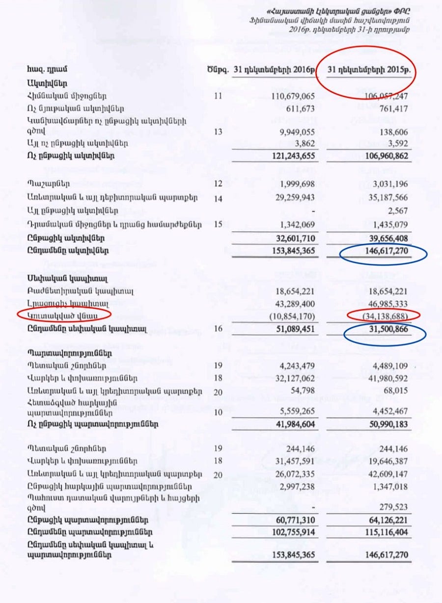 Հատուկ հանրության համար հրապարակում ենք, որ տեսնեք, թե ինչպես 2015 թ. ընկերությունը փակեց շահույթով, այն, որ կուտակված վնաս կար՝ 34 մլրդ ՀՀ դրամ 2015 թ. դեկտեմբերի 31-ով: