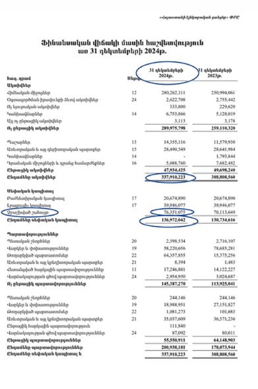 Մեր նյութում հատուկ օբյեկտիվորեն ՄԵԾ ուշադրություն ենք դարձրել նաև հաշվետվություններում առկա ակտիվների և սեփական կապիտալի մասին տեղեկատվությանը: