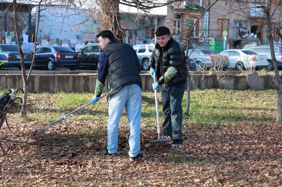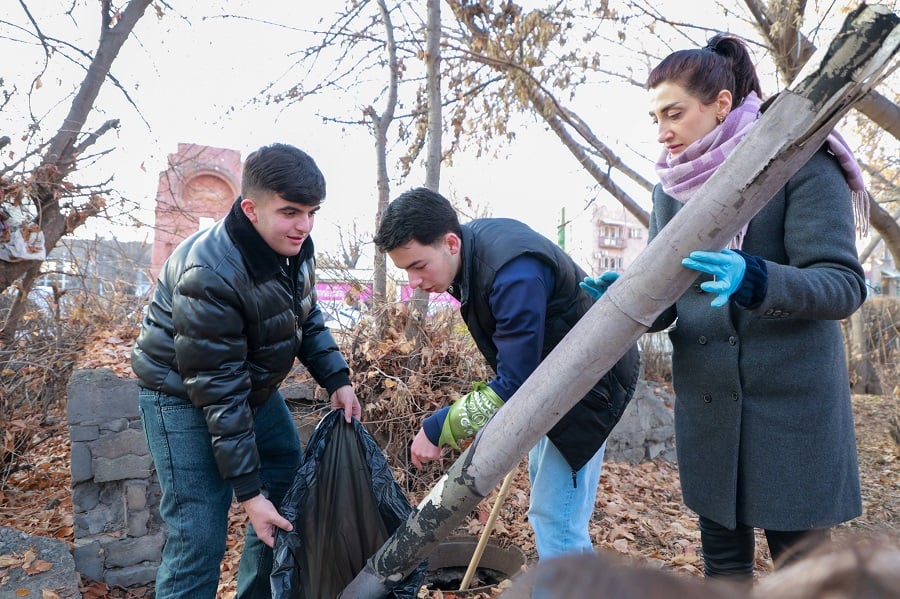 Հաղթանակի զբոսայգին մաքրելու էին եկել ԱՄՆ-ից ու եվրոպական տարբեր երկրներից Հայաստանում կամավորական աշխատանքներ իրականացնող երիտասարդներ։