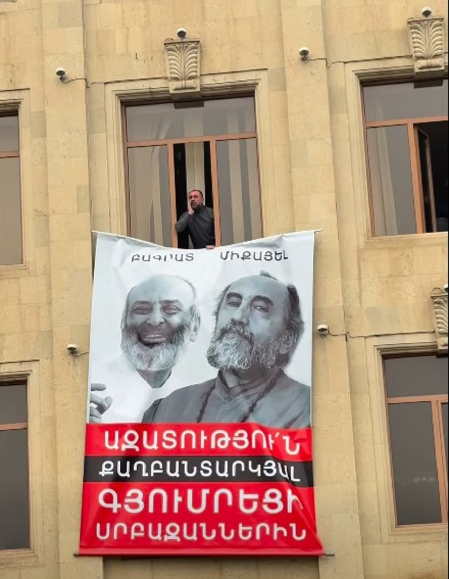 «Իմ հզոր համայնք» խմբակցության ղեկավար Ռուբեն Մխիթարյանը Բագրատ և Միքայել արքեպիսկոպոսների լուսանկարով պաստառ իջեցրեց Գյումրիի քաղաքապետարանի շենքի պատուհանից՝ ֆեյսբուքյան իր էջում զետեղված տեսանյութը մեկնաբանելով՝ «Քաղաքական «պատարագին» քաղաքական պատասխան»։