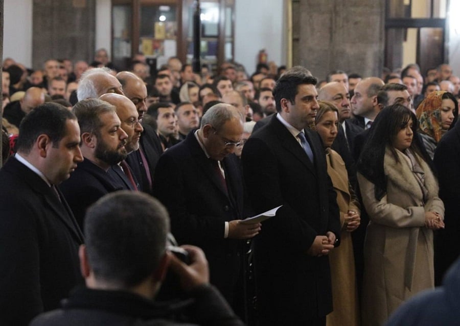 Լրագրողներն այսօր վարչապետ Նիկոլ Փաշինյանի հետ Գյումրու Սուրբ Յոթ վերք եկեղեցում պատարագի մասնակցած Ազգային ժողովի նախագահ Ալեն Սիմոնյանից հետաքրքրվեցին, թե ինչո՞ւ է իրենց ամենուր ուղեկցում Արարատյան թեմի առաջնորդ Նավասարդ արքեպիսկոպոս Կճոյանը, հավատարմության երդո՞ւմ է տվել իշխանություններին, երբ ընդամենը մի քանի օր առաջ նույն Ալեն Սիմոնյանը նրան դիմել էր պարոն Կճոյանով։