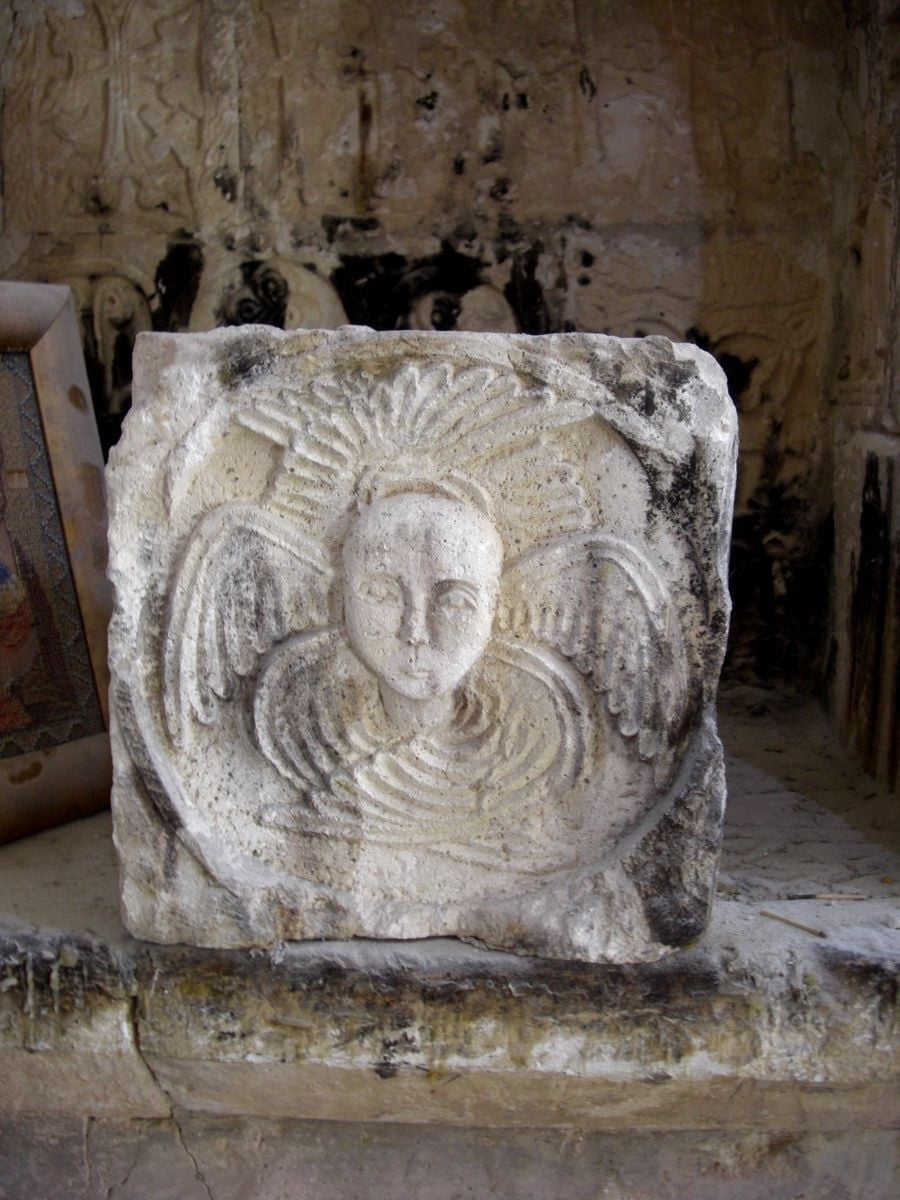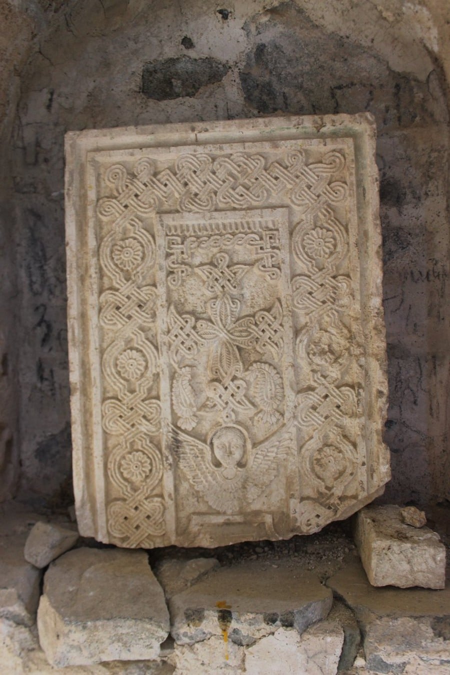 Աջակողմյա որմնախորշի մեջ տեղադրված քանդակը երեսնիվայր ընկած է։