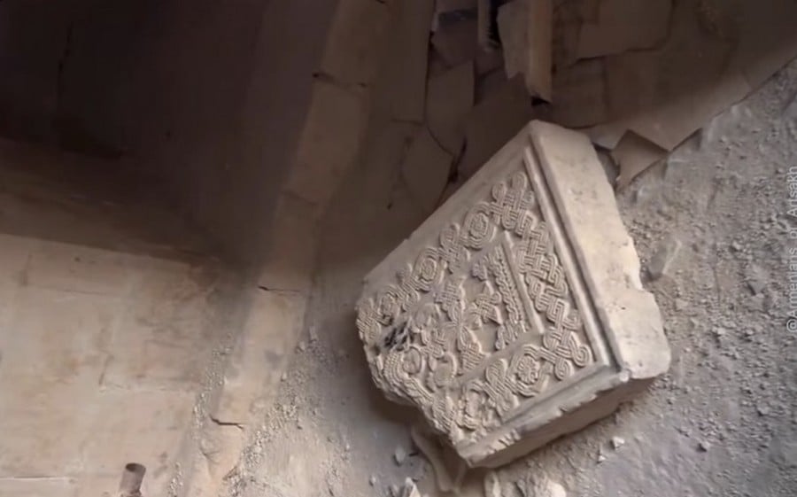 Տարածված տեսանյութի մեջ երևում է, որ անհետացել են բեմի վրա դրված եկեղեցու մանրակերտները, Սուրբ սեղանին հենած խաչքարը։