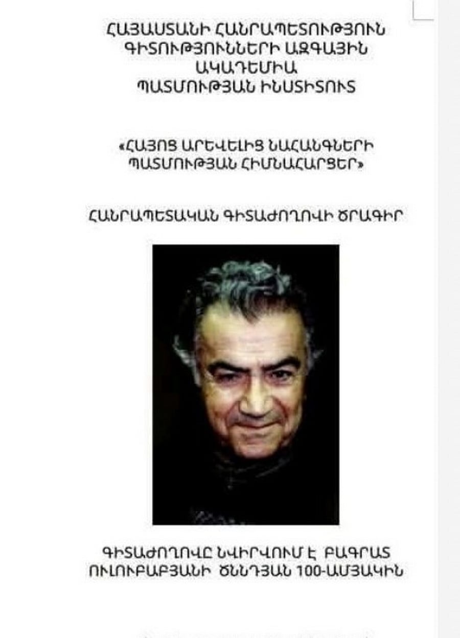 ՀՀ ԳԱԱ Պատմության ինստիտուտի Արցախի պատմամշակութային ժառանգության եւ արդի քաղաքական զարգացումների գիտական խումբը նախաձեռնել է «Հայոց արևելից կողմաց նահանգների պատմության հիմնահարցեր» խորագրով հանրապետական գիտաժողով: Վերջինիս կազմկոմիտեի անդամ, ԳԱԱ Պատմության ինստիտուտի աշխատակից Հովիկ Ավանեսովը Aravot.am-ի հետ զրույցում նշեց, որ գիտաժողովը նվիրված է անվանի պատմաբան, գրող եւ հասարակական, քաղաքական գործիչ Բագրատ Ուլուբաբյանի ծննդյան 100-ամյակին: