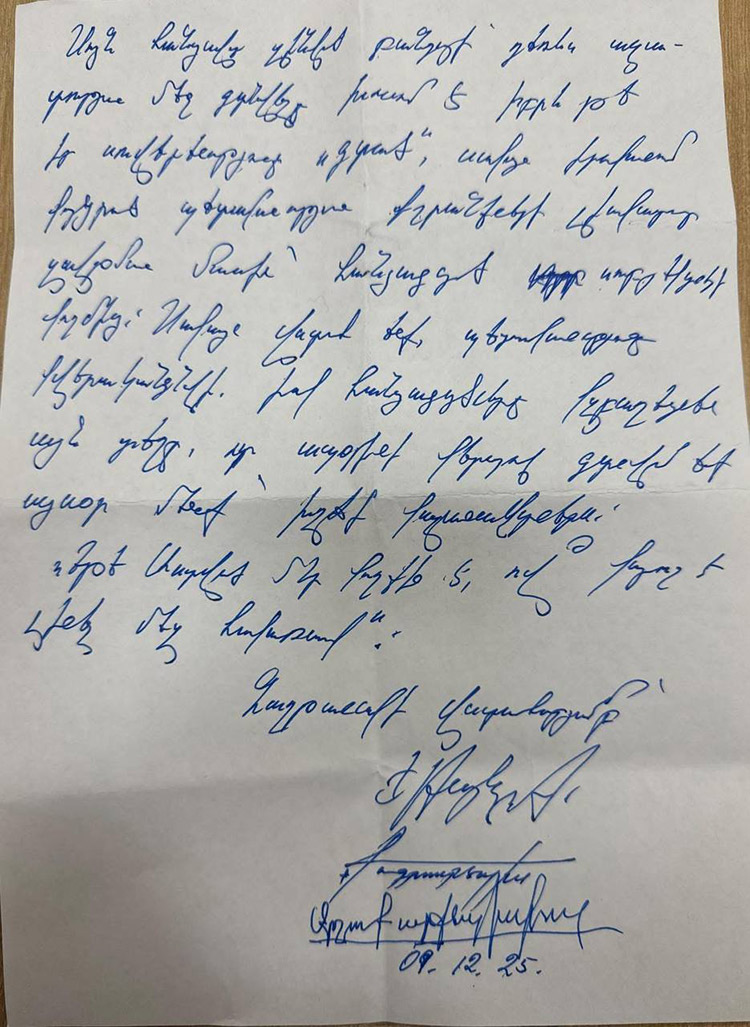 Միքայել, Բագրատ և Արշակ սրբազանների նամակն ԱԱԾ մեկուսարանից