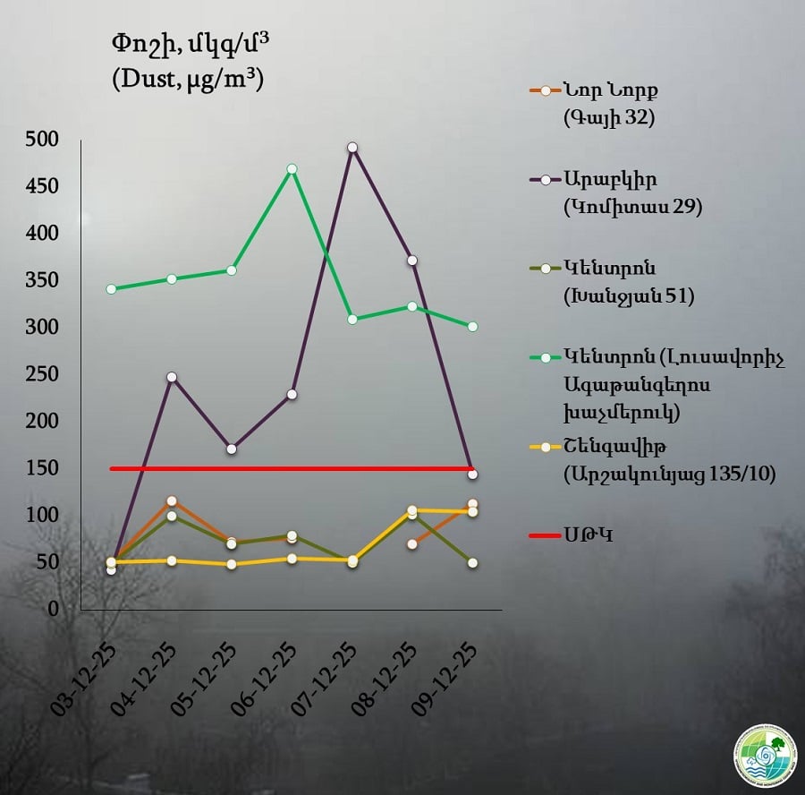 ✔️Փոշու պարունակությունը գերազանցել է սահմանային թույլատրելի կոնցենտրացիան․