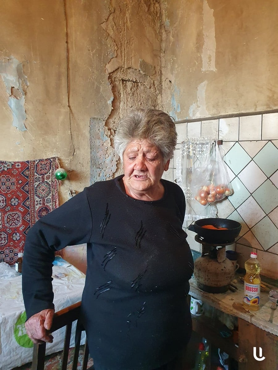 «Եղանակի տեսություն էի լսում, որ չասեց՝ անձրեւ պիտի գա կիրակի օրվանից, մոլորվեցի… չգիտենք՝ ինչ անենք, պիտի պատրաստվենք, դույլերը պիտի դնենք։ Կռիսները վխտում են, ինձ հենց հարցնում են՝ միայնա՞կ ես ապրում, ասում եմ՝ չէ, կռիսների հետ կապրիմ։ Ո՞վ է տերս, Վարդանը (ի նկատի ունի Գյումրու քաղաքապետին-Ն.Ա.) իբր մի բան պիտի աներ, էն էլ խեղճ մարդուն բռնին, տարան, գցեցին գաղութներն ու հիվանդանոցները։ Մենք Փաշինյանին դիմելու չունենք, ինքը մեզ ավելի շուտ կգցի թուրքի ջանը, քան օգուտ կտա։ 20 հազար նպաստս է, 36 հազար էլ թոշակս է, դե արի, ապրի… Մտածում եմ՝ դուրս գամ, վարձով ապրեմ, բայց ինչպե՞ս տամ գումարը»,- ասաց միայնակ կինը։