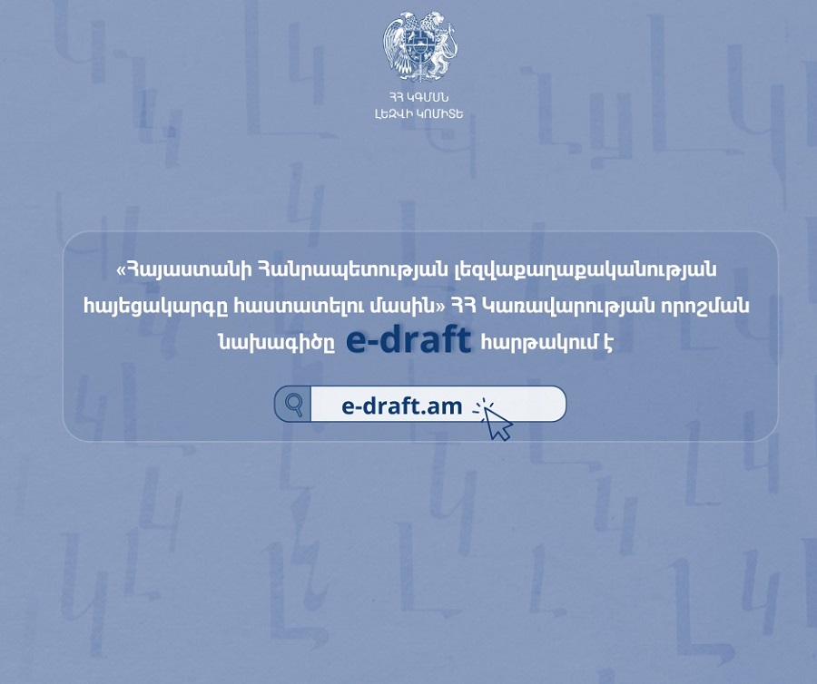 Հանրային քննարկման է դրվել «Հայաստանի Հանրապետության լեզվաքաղաքականության հայեցակարգը հաստատելու մասին» ՀՀ Կառավարության որոշման նախագիծը։