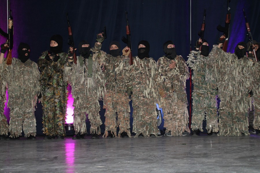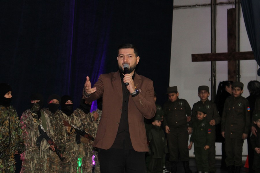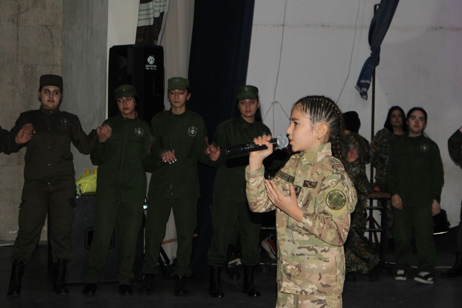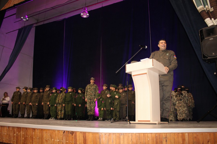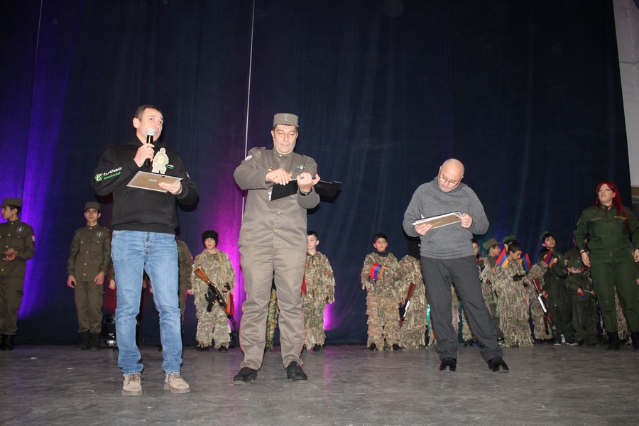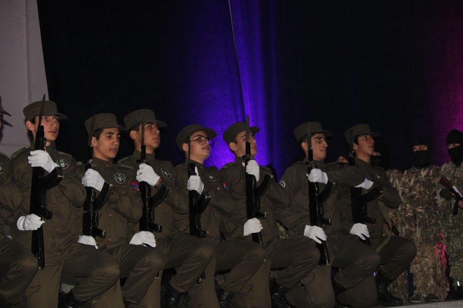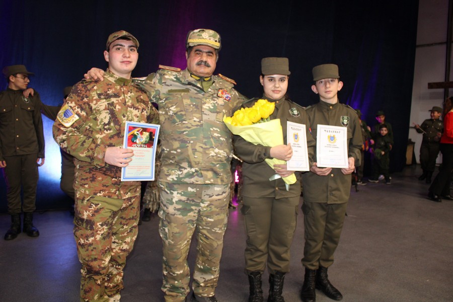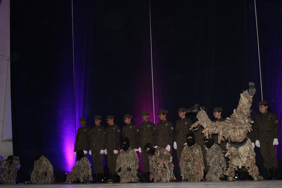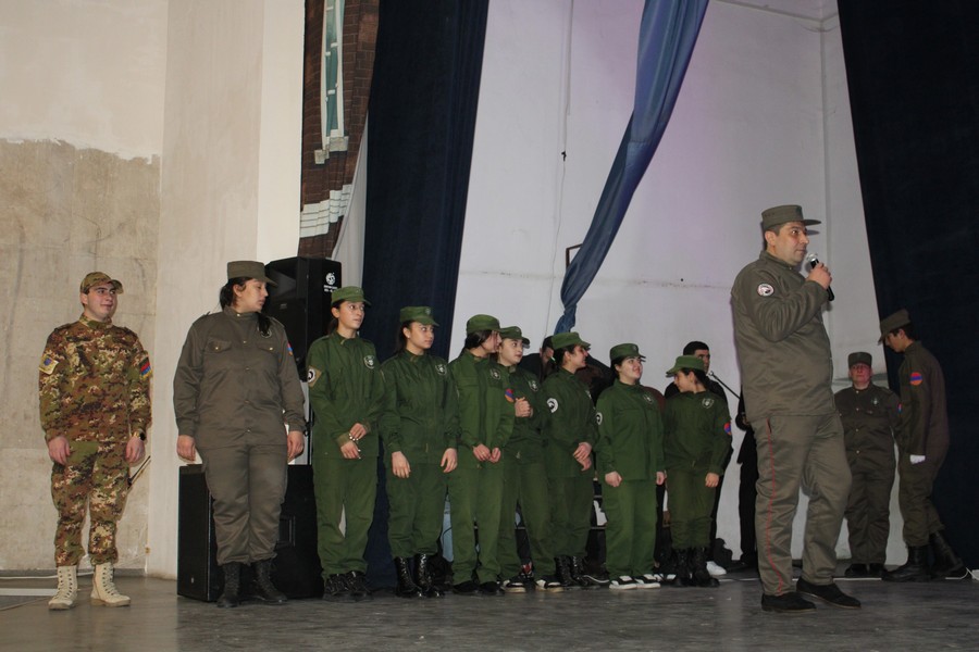 Դահլիճի բեմում «Ապագա զինվոր»-ի սաներն էին՝ տարբեր տարիքի, սեռի ու համապատասխան դասակների։ Եղավ լռության րոպե, հնչեցին ՀՀ և Հայոց բանակի Օրհներգերը։ Ներկաներին ողջունեց ակումբի հիմնադիր-տնօրեն, փոխգնդապետ Սամսոն Մուրադյանը։ Շնորհավորելով Հայոց բանակի օրվա առթիվ՝ անդրադարձավ իր ղեկավարած ակումբի գործունեության։ Կարևորեց այն որպես Հայոց բանակի մի փոքր, բայց հուսալի հիմնաքար։ Տեղեկացրեց այժմ նույն դպրոցում թրծված շատ տղաներ ծառայում են Հայոց բանակում, տարիների ընթացքում մոտ 200 հոգի եղել են բանակի զինվոր, և գրեթե բոլորի ծնողները, ինքը զորամասերի հրամանատարների կողմից շնորհակալագրեր են ստացել։ Նույն ակումբի աղջիկ-սաներից նույնպես կան, որ ընդունվել են ռազմական ուսումնական հաստատություններ, կան նաև դիմորդներ։ Իր սաները նաև ռազմական ուսուցում են անցել արտերկրի համապատասխան ուսումնական հաստատություններում, այժմ էլ կան ուսանողներ։ Շնորհակալություն հայտնեց իր սաներին, նրանց ծնողներին, որ գիտակցում են Հայոց բանակի դերը, և իրենց զավակներին ուղղորդել են հանրակրթական դպրոցից բացի, սովորեն ռազմամարզական արվեստ։ Շնորհակալություն հայտնեց աջակիցներին, առանձնապես կարևորեց «Տաշիր»-ի դերը, որ աջակցել է իրենց ֆինանսապես։