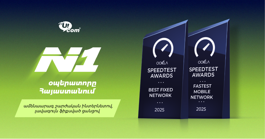 Ucom-ը միաժամանակ հինգ մրցանակի է արժանացել Ookla® ընկերության կողմից շնորհվող Speedtest Awards հեղինակավոր մրցանակաբաշխության շրջանակում՝ այդ թվում «Հայաստանում ամենաարագ շարժական ինտերնետ» (Fastest Mobile Network), «Հայաստանում լավագույն ֆիքսված ցանց» (Best Fixed Network) և «Հայաստանում լավագույն շարժական ցանց» (Best Mobile Network) անվանակարգերում՝ 2025 թվականի երկրորդ կիսամյակի արդյունքներով։