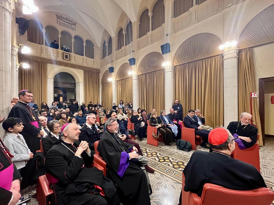 Երեկոյան ժամերգությունը նախագահեց Վատիկանում Ամենայն Հայոց Կաթողիկոսության ներկայացուցիչ Խաժակ արքեպիսկոպոս Պարսամյանը։ Արարողությանը մասնակցում էին Սուրբ Աթոռի Արևելյան Եկեղեցիների բաժնի նախագահ կարդինալ Կլաուդիո Գուջերոտտին և Սուրբ Աթոռի Քրիստոնեական միասնության խթանման բաժնի քարտուղար արքեպիսկոպոս Ֆլավիո Պաչեն, Լևոն արքեպիսկոպոս Զեքիյանը, Սուրբ Ղազար կղզու Մխիթարյան միաբանության հայրերը, Հռոմի Քահանայապետական Լևոնյան հայ վարժարանի տեսուչը՝ երգչախմբի մասնակցությամբ, Իտալիայի Հայ Առաքելական Եկեղեցու հոգևոր հովիվներ Ներսես աբեղա Հարությունյանը և Աթանաս աբեղա Սարգսյանը, ինչպես նաև Սուրբ Աթոռում Անգլիկան Եկեղեցու ներկայացուցիչ եպիսկոպոս Էնթոնի Բոլը և այլ քրիստոնյա հարանվանությունների եկեղեցականներ։