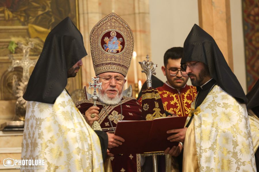Սրբազան արարողության ընթացքում՝ սուրբգրային ընթերցումներից հետո, Ամենայն Հայոց Կաթողիկոսն օրհնեց խորանի վրա դրված ջուրն ու յուղը։