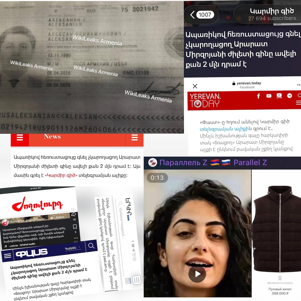 Այ որ ճիշտ պահես քեզ, Ալյոշա, գուցե թողնեմ ժիլետիս հետ էլ նկարվես: Ի դեպ, «բացահայտումը», թե ես թանկարժեք բաճկոն եմ հագնում, առաջինը կարծես արել է մի ռուսալեզու տելեգրամ-ալիք, «անաչառ» լրատվամիջոցներն էլ էլի հավեսով տարածել են: Ընդ որում՝ «բացահայտող» աղջիկն էլ իսկական չէ, արհեստական բանականությամբ է գեներացված (չարաշահում եք ԱԲ-ն): Ասեմ՝ բաճկոնը գնել եմ պատիկներով ավելի էժան, քան տարածում են, բրենդային աութլեթից: Գնելու համար ոչ մի գույք չեմ տվել պարտքի դիմաց: