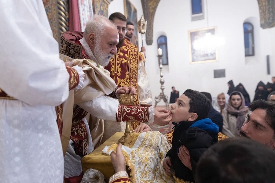 Սուրբ Պատարագի ավարտին Ամենայն Հայոց Կաթողիկոսը բարձրացավ Սուրբ Խորան և Սուրբ Սեղանի կանթեղից վառեց Տեր Հիսուս Քրիստոսին խորհրդանշող կենսատու մոմը, որը բաշխվեց հավատացյալներին:
