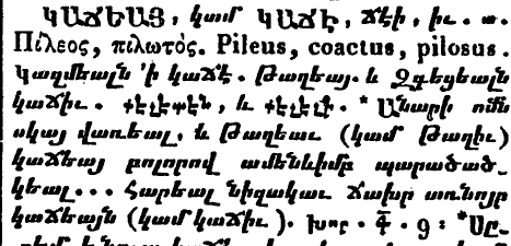 [22] Նոր բառգիրք հայկազեան լեզուի (այսուհետև` ՆՀԲ), հ. I, Վենետիկ, 1836, էջ 492: