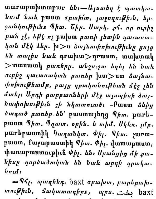 Երկրորդ հղումը՝ «1514 Գրաբարի բաստ «բախտ, երջանկություն» բառի հետ ընդհանրությունները մթագնած են:», նույնպես սխալ է: Քանի որ անգամ ատենախոսի նշած «մթագնած ընդհանրությունները» չեն առնչվում Հ. Աճառյանի՝ Բախտ բառահոդվածում նշած բաստ-ին. հմմտ.՝ «….