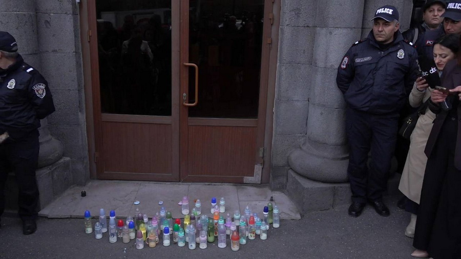 Ի նշան բողոքի` կուսակցության կին անդամները կաթի շշեր տեղադրեցին Հակակոռուպցիան կոմիտեի մոտ։