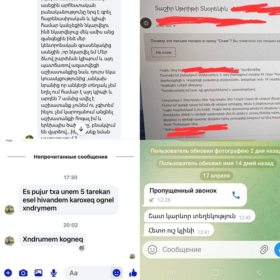 Վերջին օրերի հետապնդումների ֆոնին մեր թիմակիցները ստանում են կասկածելի, ակնհայտորեն ուղղորդված զանգեր ու նամակներ՝ նյութական օգնության խնդրանքներով ու տարբեր կասկածելի առաջարկներով։