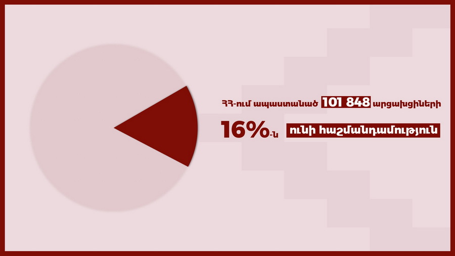 World Vision Armenia-ի 2023թ. նոյեմբերի 7-ի տվյալներով՝ Հայաստանում ապաստանած 101, 848 արցախցիների 16%-ը եղել են հաշմանդամություն ունեցող անձինք։