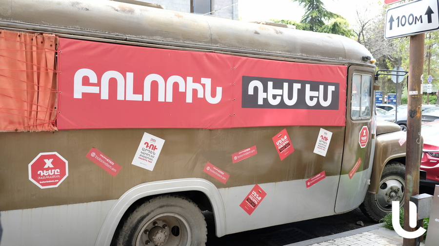 «Սա մեր ավտոբուսն է, բոլորդ տեսել եք՝ քաղաքական ուժերը հիմնականում ավտոբուսներով են անում իրենց քարոզարշավը: Մենք էլ ենք պատրաստել մեր քարոզչական ավտոբուսը՝ բոլորին դեմ ենք: Կենտրոնական ընտրական հանձնաժողովի դիմաց ավտոբուսը կանգնեցնելու նպատակներից մեկն այն է, որ պետք է վերջապես հասկանանք՝ ում ենք դեմ: Տեսնենք՝ ովքեր են գալիս ընտրություններին գրանցվեն, որ բոլորին դեմ լինենք»,- այսօր կենտրոնական ընտրական հանձնաժողովի շենքի դիմաց լրագրողներին ասաց կուսակցության լիազոր ներկայացուցիչ Արամ Քոչարյանը: